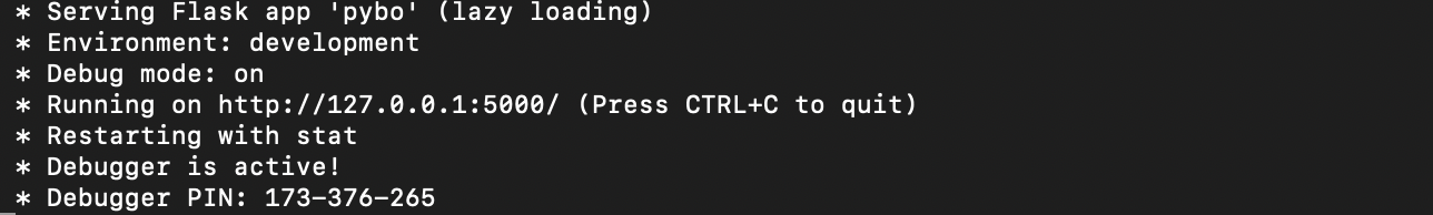 pybo.py에서 작성한 함수, hello_pybo 에서 return 된 "Hello, Pybo!"가 보인다면 성공이다.