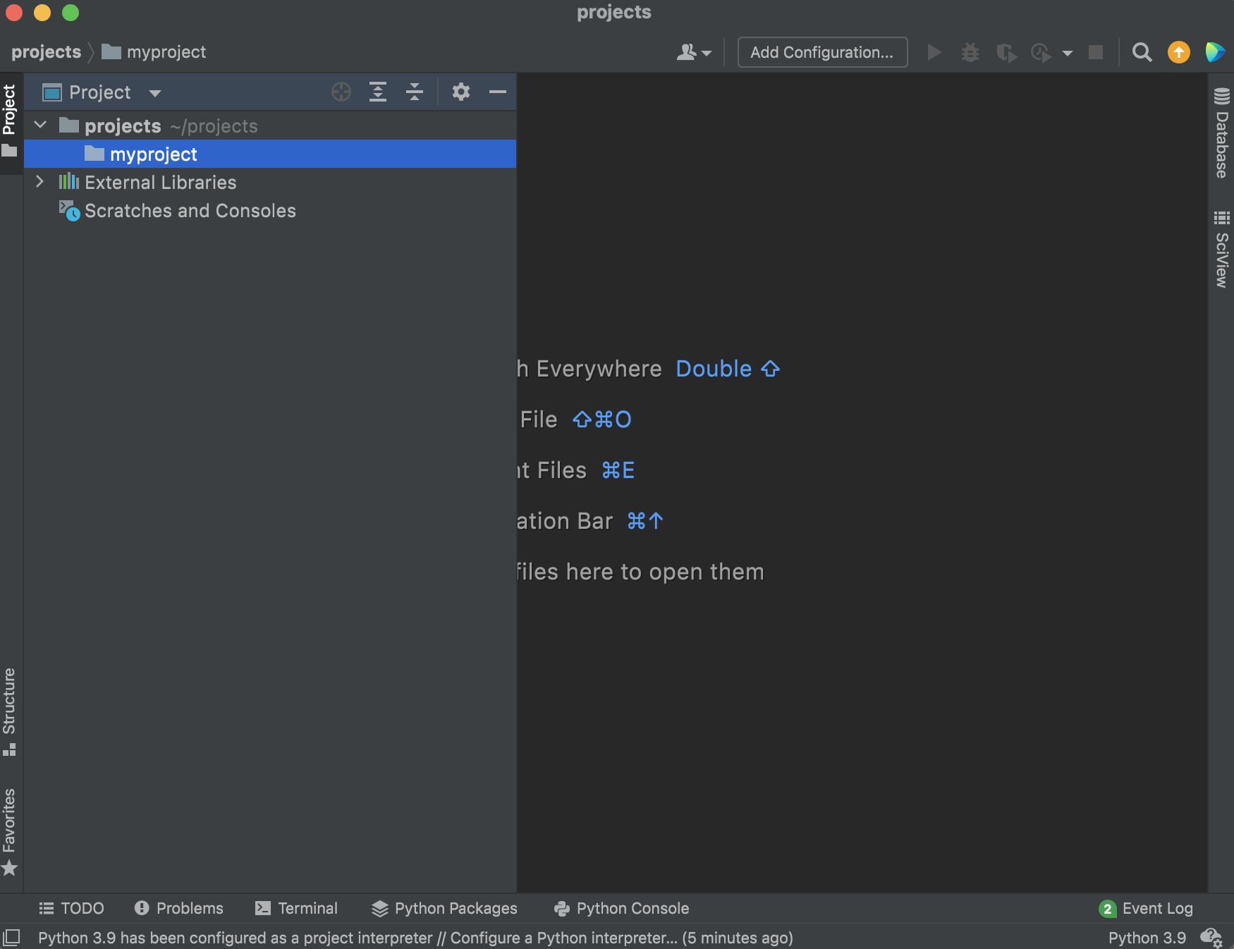 이제 상단 PyCharm > Preferences 에서 Interpreter의 위치를