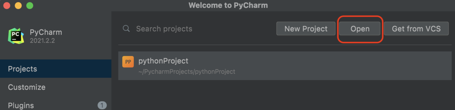 파이참 설치 후 실행한 화면에서 Open을 클릭